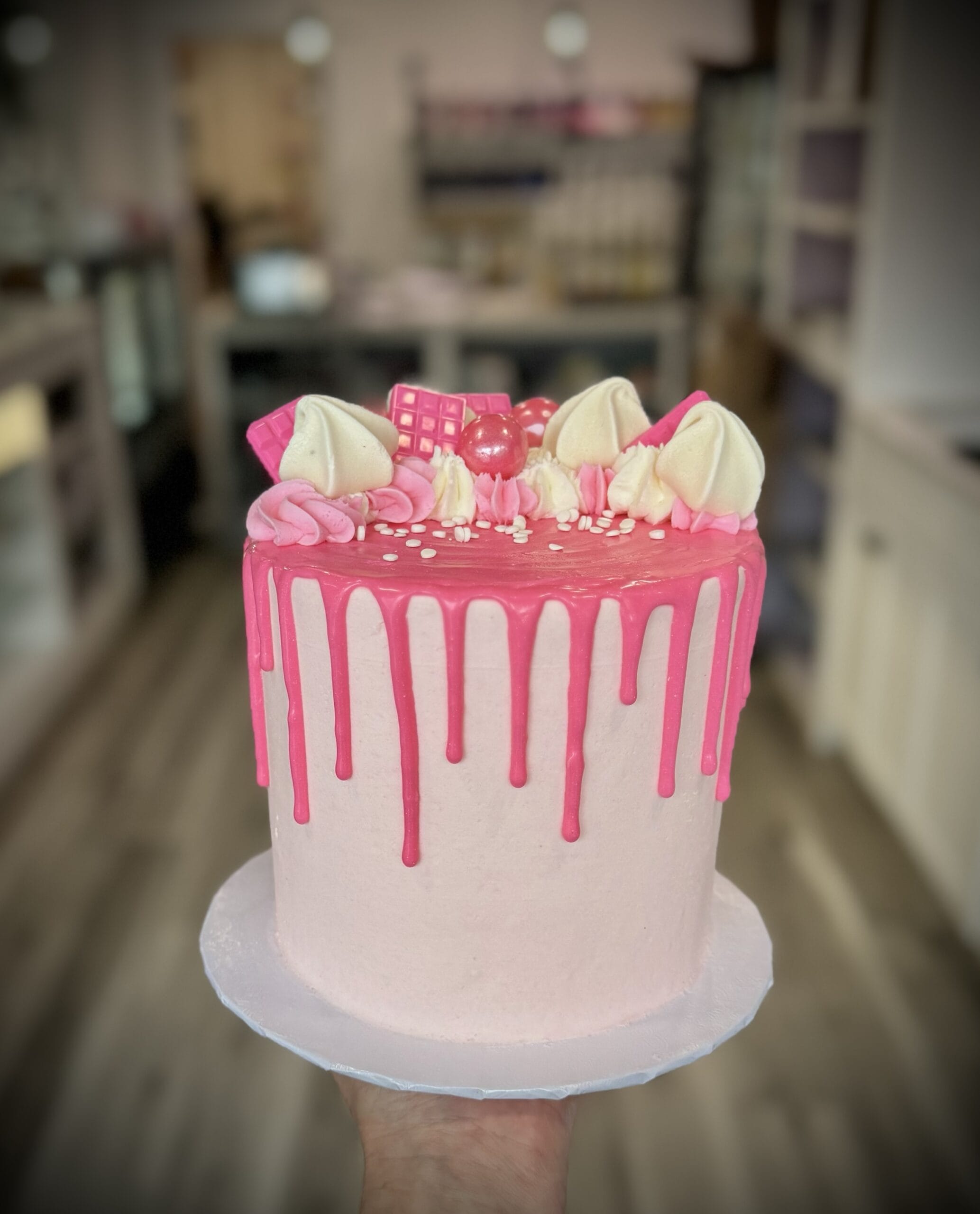 Base cake comes with frosting plops and candies on top only! All other decor is add on!